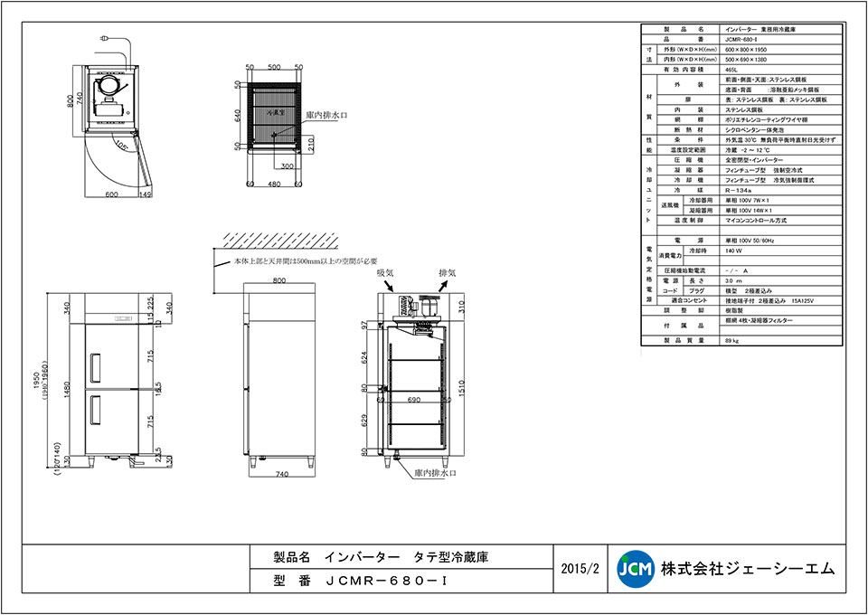 冷凍室なし