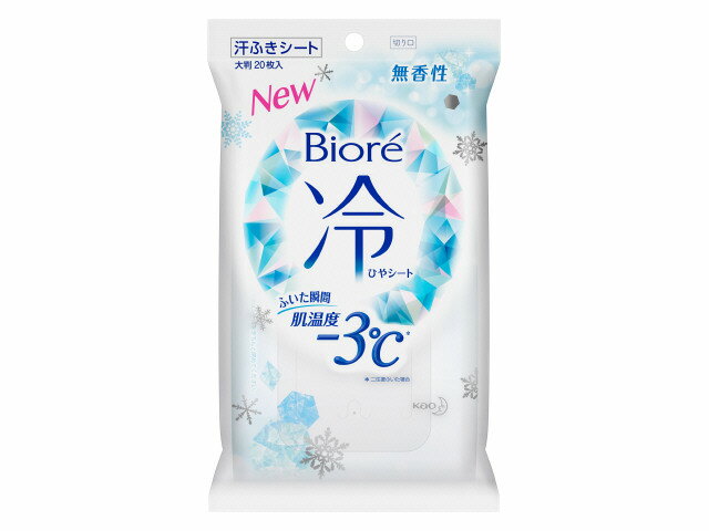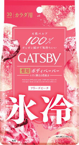 拭いた瞬間、ヒンヤリ爽快リフレッシュ!冷感アイスタイプー3℃(※1往復拭いた場合)汗や肌の汚れをしっかり拭き取り、肌もキモチも快適に。1枚で顔も身体も全身拭ける大判サイズのフェイス&ボディアイスシート。みずみずしく、まるでシャワーを浴びたような爽快感。汗・皮脂・テカリもすっきり。30枚入、ひんやり涼やかで清潔感を感じるフローズンミントの香り