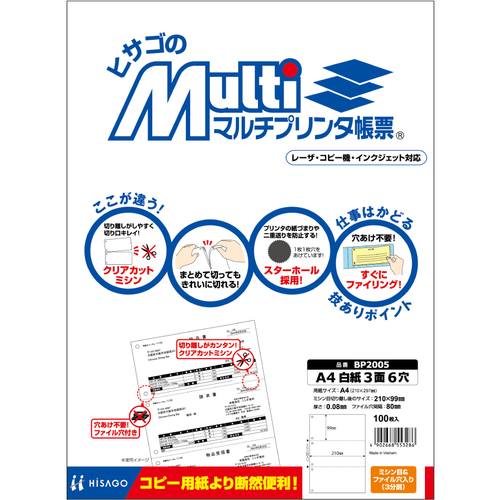 HISAGO マルチプリンタ帳票 A4 地紋 3面 BP2057