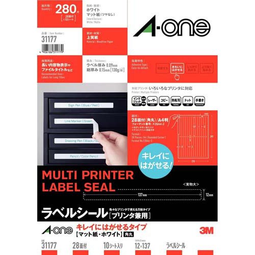 ・宛名ラベルはもちろん、発送用ラベルや大型ラベルなど、ご使用用途に合わせたラベルをご使用ください。・インクジェットプリンタ、レーザープリンタ、コピー機、熱転写プリンタで使用できるマルチタイプラベルです。・印字適正、耐熱性にも優れています。・カールが少ない使い易さを追求した製品です。