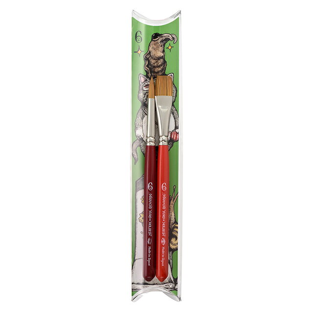一般的な筆の長さが200mm前後なのですが、 前々から長すぎて使いにくいなと感じ、 短めのもは無いのかと探していたところ、こちらの商品を見つけました。 セット内の長い筆でも155mm程なので、小さめの手にも馴染みやすくとても使いやすかったです。 平筆と丸筆のセットなので基本的に多様出来そうでとても助かります。