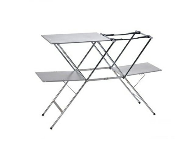 シートのうえにお皿やグラスを広げると、うっかりひっくり返してしまうことも。そこで活躍するのが、コンパクトに持ち運べるおりたたみ式のアウトドアテーブル。カップホルダー付きなので、不安定なコップやボトルもしっかり固定して置けます。