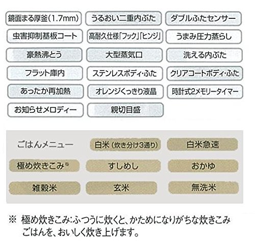 ・ガスなみのIHの強火でおいしく炊き上げ・お好みの炊き加減に調節できる「マニュアル炊飯」・すし・おかゆ・無洗米・玄米コースつき