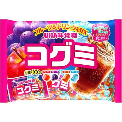 水飴(国内製造)、砂糖、ゼラチン、植物油脂、還元パラチノース/ ソルビトール、酸味料、ゲル化剤(増粘多糖類)、香料、着色料(紅花黄、クチナシ)、光沢剤、甘味料(スクラロース)、(一部に小麦・ゼラチンを含む)