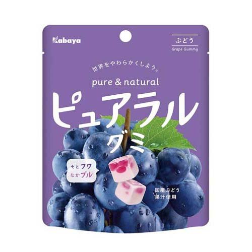 砂糖(国内製造、タイ製造)、水飴(国内製造)、ゼラチン、ぶどう果汁(ぶどう(長野県産))/ソルビトール、酸味料、炭酸カルシウム、香料、着色料(アントシアニン)、ゲル化剤(ペクチン)、乳化剤、酸化防止剤(ビタミンC)
