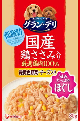 肉類(国産鶏ササミ、国産鶏肉、牛肉)、穀類(小麦粉、小麦グルテン)、大豆タンパク、馬鈴薯でん粉、糖類(グラニュー糖、オリゴ糖)、フィッシュエキスパウダー、動物性油脂、バターミルクパウダー、チーズフィリング、野菜類(キャベツ、ホウレンソウ)、セレン酵母、プロピレングリコール、ミネラル類(カルシウム、リン、ナトリウム、クロライド、鉄、銅、マンガン、亜鉛、ヨウ素、コバルト)、ソルビトール、増粘安定剤(加工でん粉)、保存料(ソルビン酸カリウム、デヒドロ酢酸ナトリウム)、メタリン酸ナトリウム、グリセリン、ビタミン類(A、B2、B12、D、E、パントテン酸、コリン)、ポリリン酸ナトリウム、香料、酸化防止剤(エリソルビン酸ナトリウム、ビタミンC)、着色料(β-カロテン、二酸化チタン、食用赤色106号、食用黄色4号、食用黄色5号、食用青色1号)、発色剤(亜硝酸ナトリウム)、グルコサミン、コンドロイチン