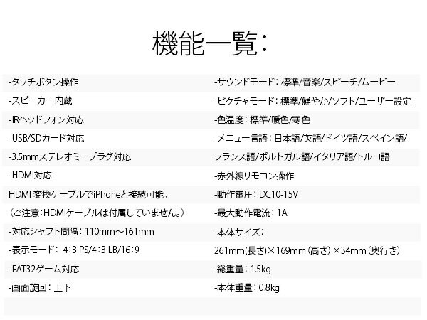 売上ランキング「ヘッドレストモニター」