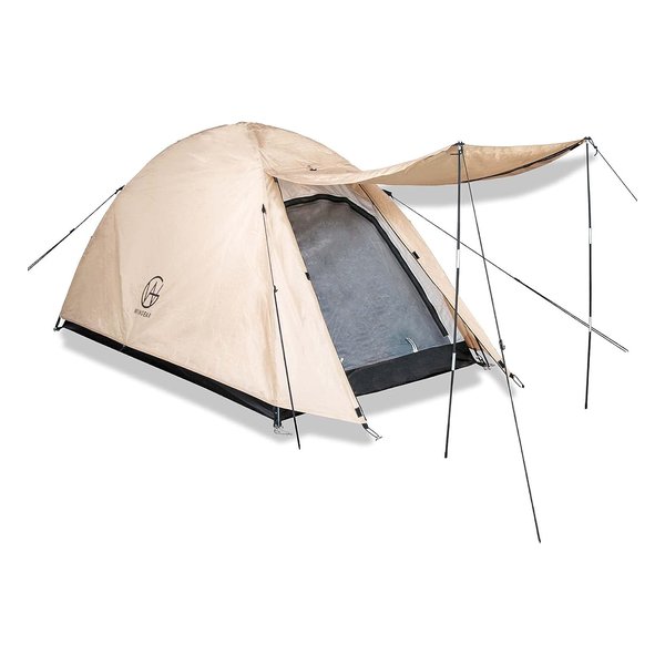 オーニングが発売されているのに気付き、 購入する気になりました。 床面積での二人用と有りますが、天井部の巾が狭いので、 前バージョンのドーム型より容積が狭くなり、 ソロで使う事になりそうです。 素早く展開、収納出来るのが一番。 換気も考慮されており、 前作同様に日本特有の湿気による結露の心配もなさそうです。 (テント泊では寒暖よりも結露の有無が快適さの基準では、 と、思っています。)