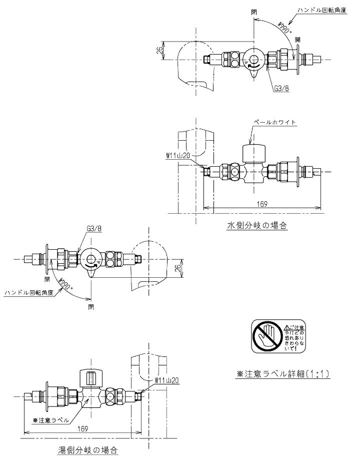 ■食器洗い乾燥機用 分岐栓 ■混合分岐壁出し用(26mm・28mm用) ■全メーカー共通タイプ ※ソケット変更でW28-18になります。 ※取り付け後約48mm前へ出ます。